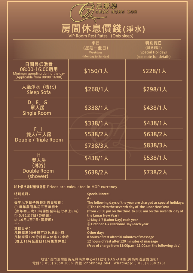 地址:澳門波爾圖街光輝商業中心431號地下AG、AH鋪(美高梅酒店對面街)