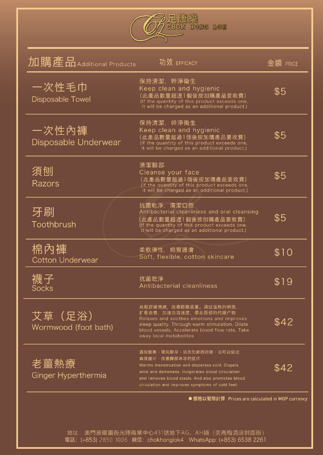 地址:澳門波爾圖街光輝商業中心431號地下AG、AH鋪(美高梅酒店對面街)電話:(+853)2850 1006微信:chokhonglok4WhatsApp:(+853)6538 2261Line:chokhonglok4